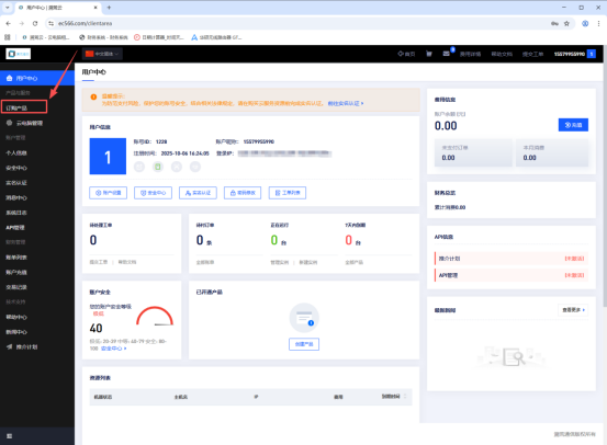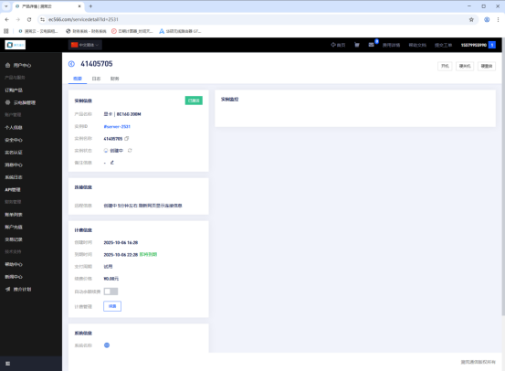 下单后自动创建机器,5-10分钟后手动刷新网页,会显示远程信息。