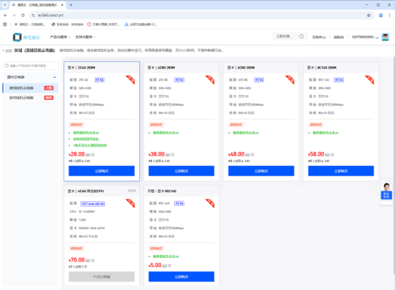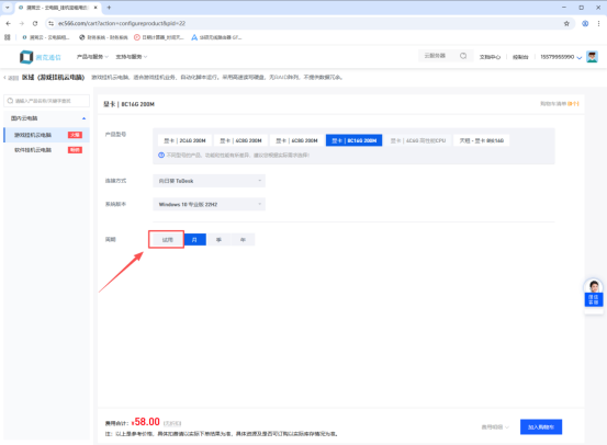 4.选择配置,使用手机号注册的 每个配置都可以免费试用6小时。